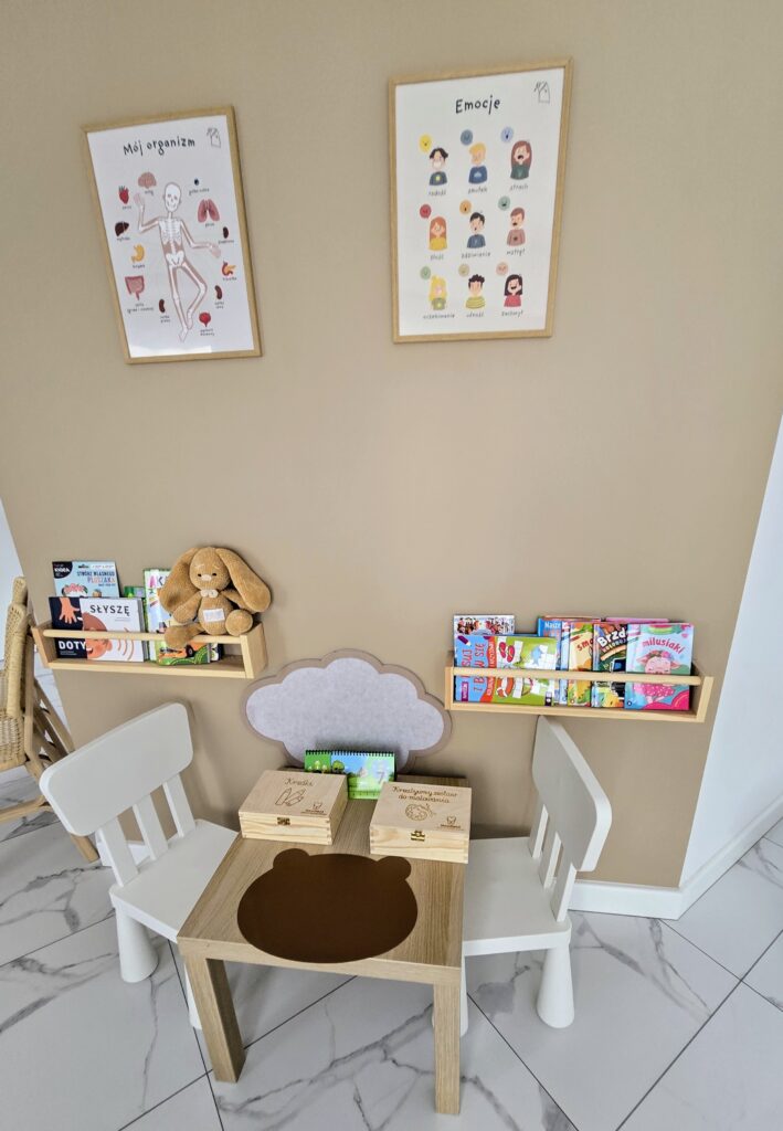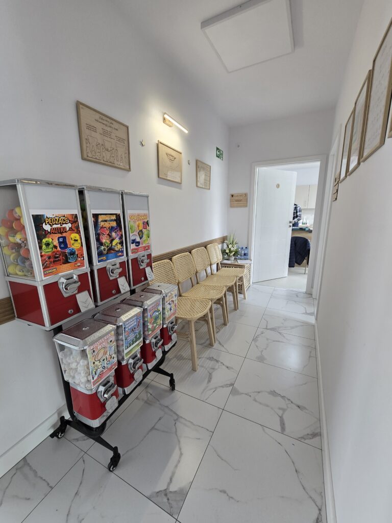 Na pierwszą wizytę proszę pojawić się 10 minut wcześniej, rodzic ze spokojem wypełni ankietę, dziecko będzie miało czas na zabawę w kąciku dziecięcym. Krótka zabawa przed wizytą wpływa bardzo uspokajająco.